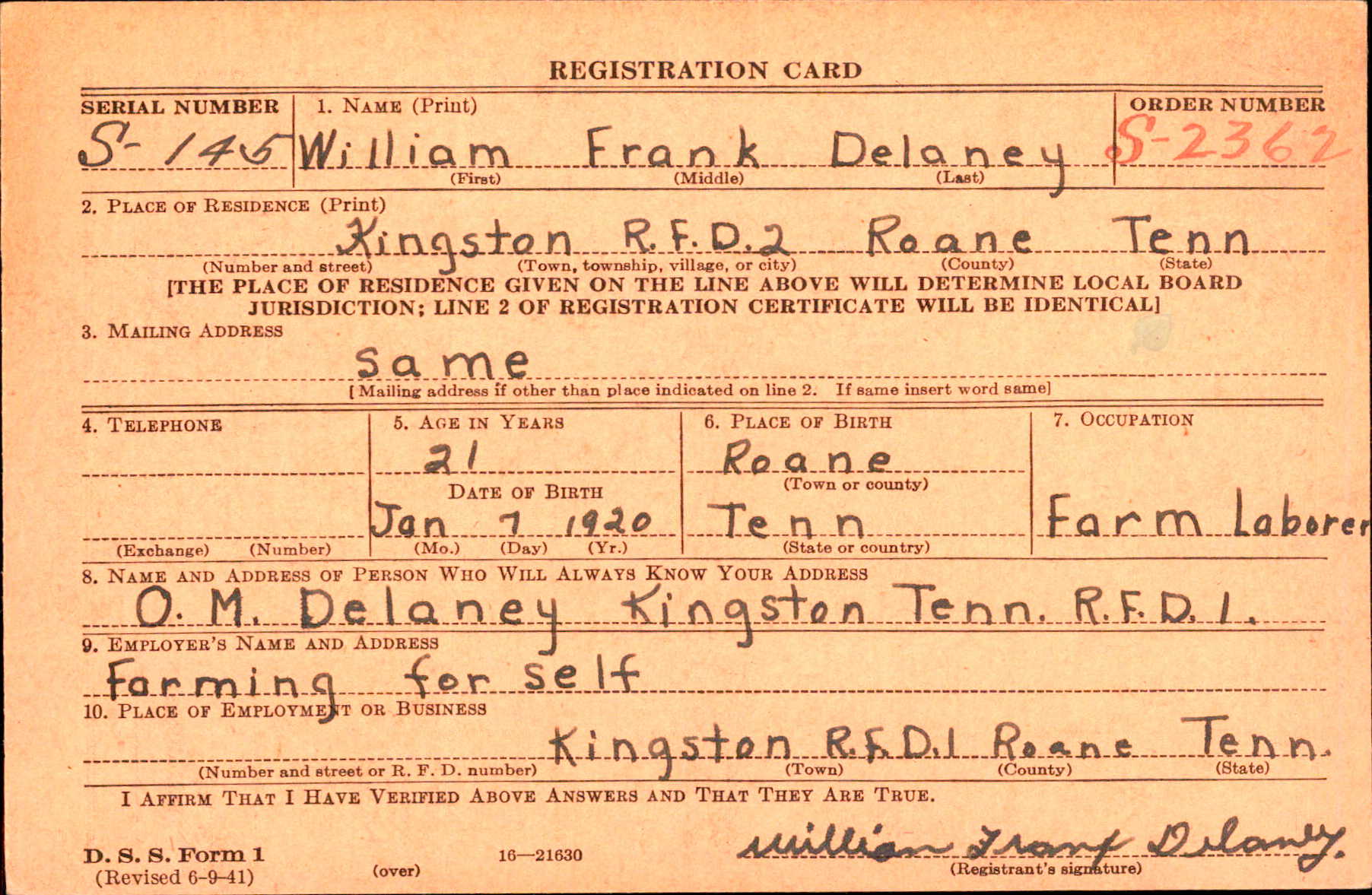 Delaney’s remains lay there for the next six decades. Then in 2017, the U.S. Defense Department’s POW/MIA Accounting Agency dug up the remains and began DNA testing, based on indications in records the body might have been Delaney’s. Officials confirmed the match in December, according to the agency. Delaney’s remains flew into McGhee Tyson Airport in Knoxville just before 7 p.m. for transport to Kingston. He’ll be buried there on Memorial Day in Lawnville Cemetery after a funeral service at Young’s Chapel Cumberland Presbyterian Church on Lawnville Road.