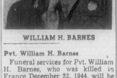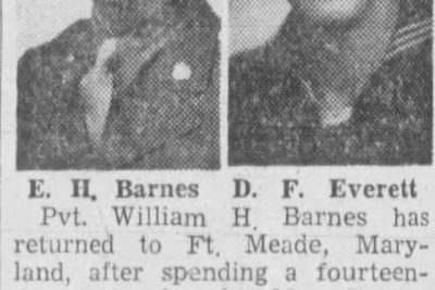 Pvt. William H. Barnes has returned to Ft. Meade, Maryland, after spending a fourteen day furlough, with Mrs. Barnes and their daughtes, Betty and Joyce at their home 904 Hill street and his parents, Mr. and Mrs. J.D. Barnes at Crandell, Ga. Pvt. Barnes was employed at the Big Jack Company in Bristol when called into service five months ago.