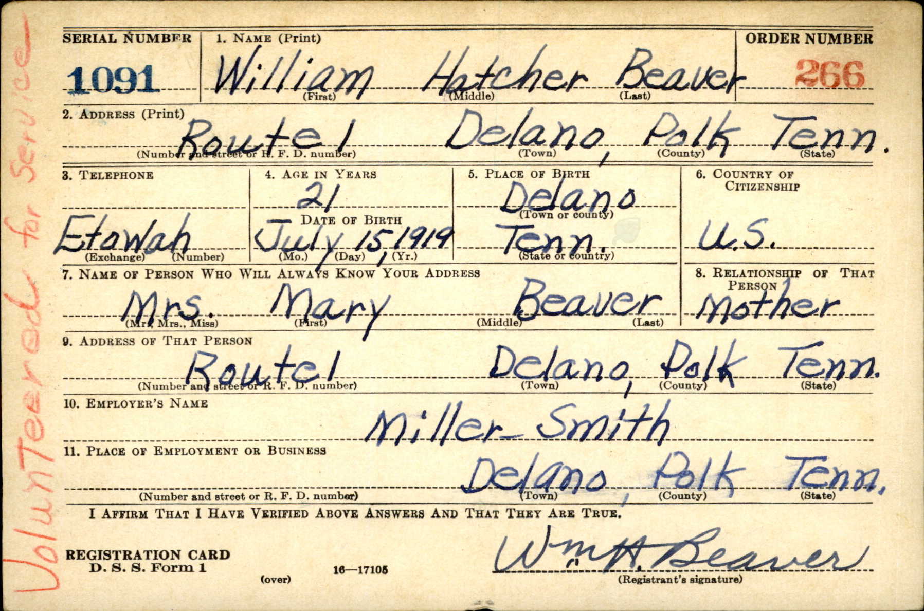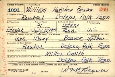 William “Bill” Hatcher Beaver was born in Delano, Tennessee. He was the son of Edwin Heller Beaver and Mary Elizabeth Pannell.