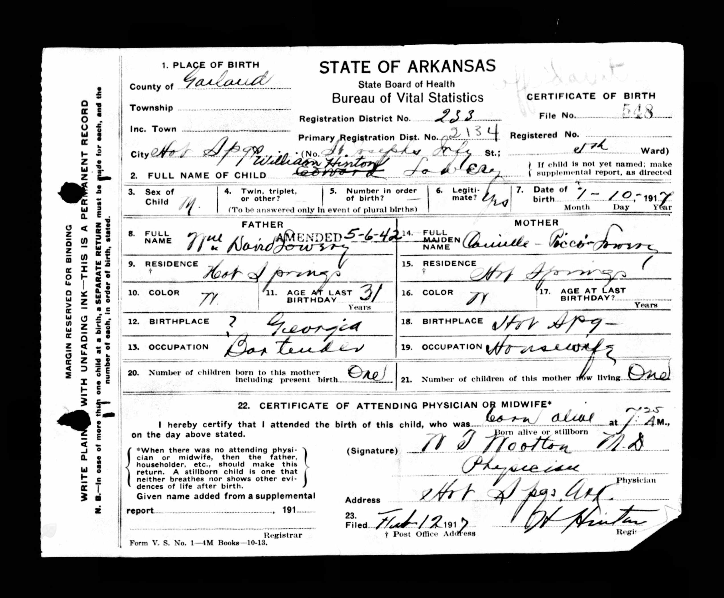 - Date of birth: 10 January 1917