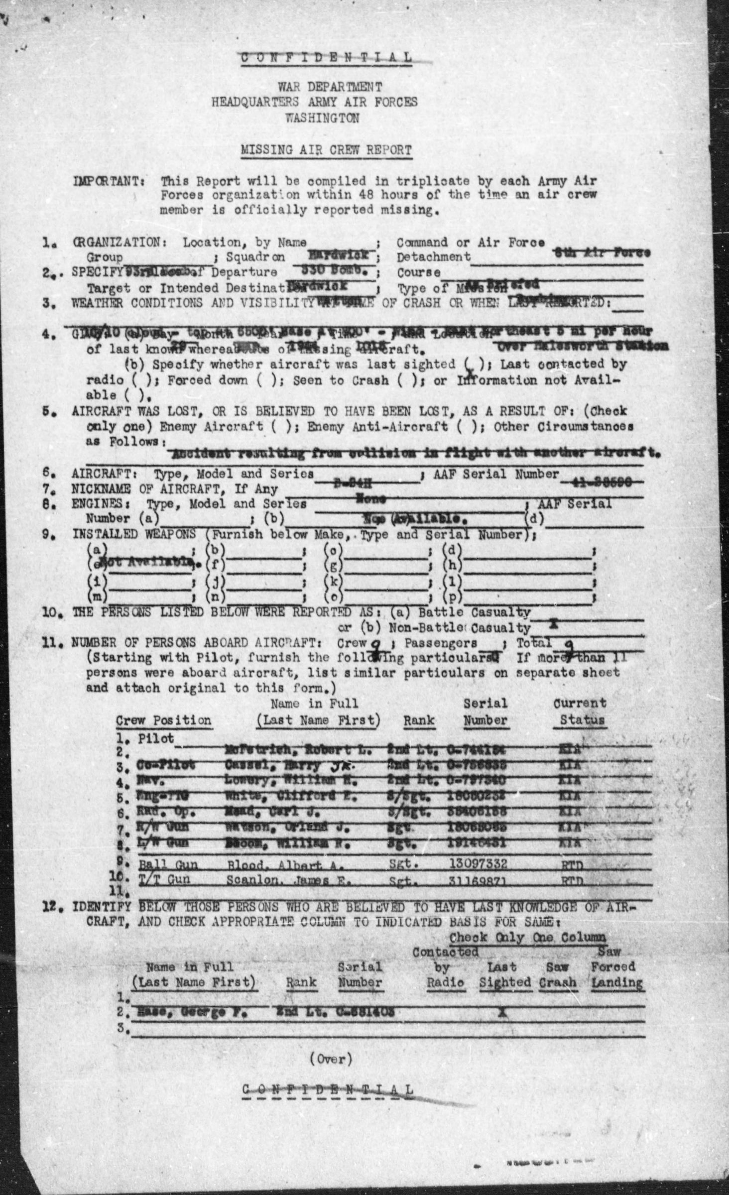 - Service Branch: Army/Army Air Forces