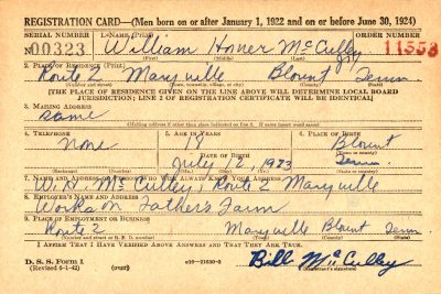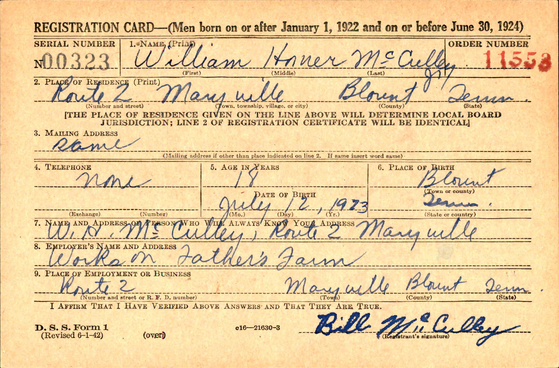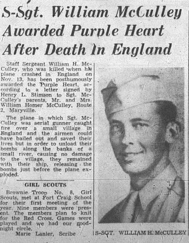 William Homer McCulley was killed in action in England. He attended Maryville High School graduating in 1942.