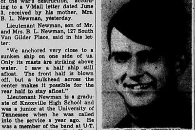 Lieutenant Nwman is a graduate of Knoxville High School and was a junior at the University of Tennessee when he was called into service a year ago. He was a member of the band at U-T. He was trained at Fort Knox, Ky., Camp Young, Calif., and Camp Campbell, Ky.