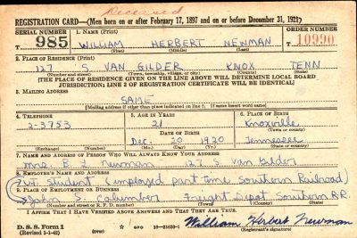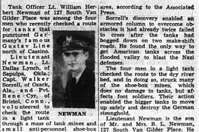 William Herbert Newman was the son of Buther Lee Newman and Henrietta Clementine “Hetty” Reed. He entered the Army in June, 1942 while  a junior at the University of Tennessee and went overseas in 1943. Lieutenant Newman had fought in the Italian campaign at Cassino and later was wounded in the American advance  above Rome.