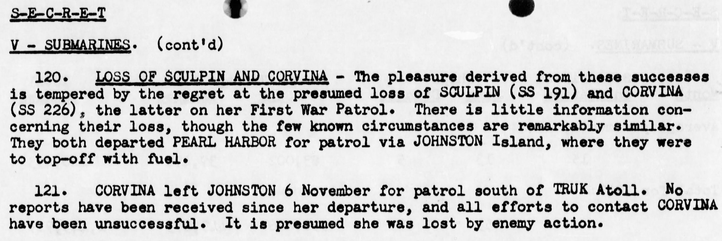 Submarine USS Corvina SS-226. His ship was commissioned Aug. 6, 1943.