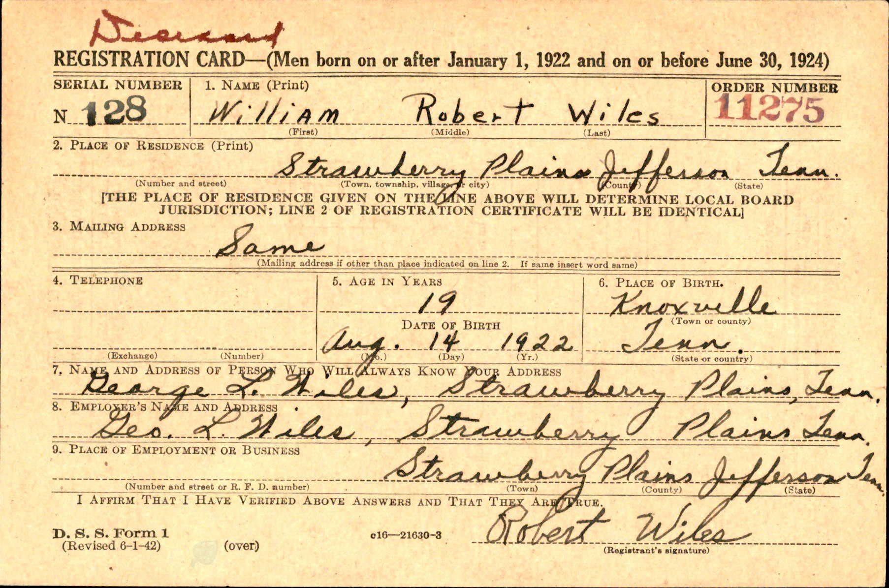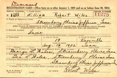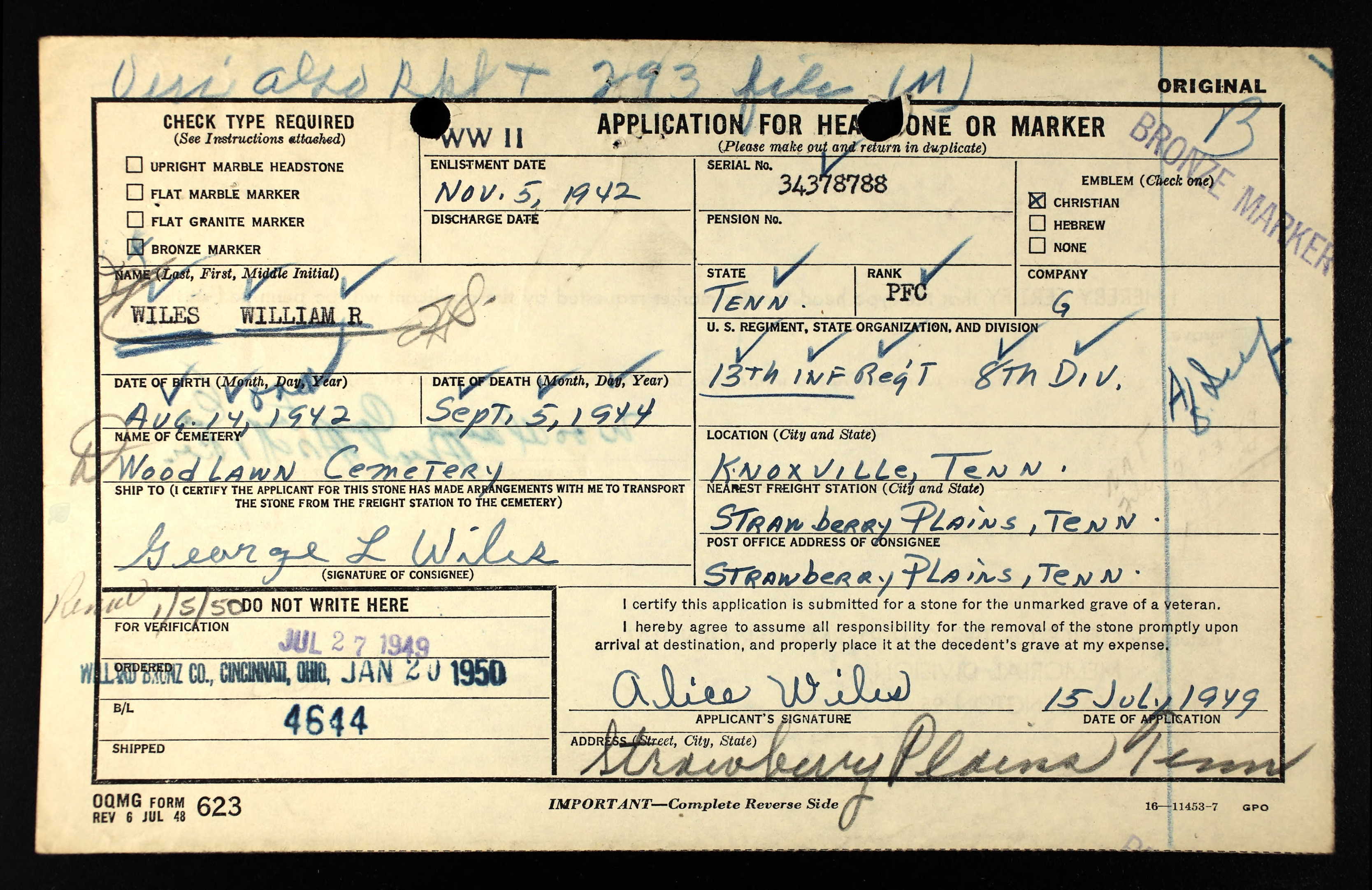 Private First Class William Robert Wiles was born at Knoxville, Tennessee