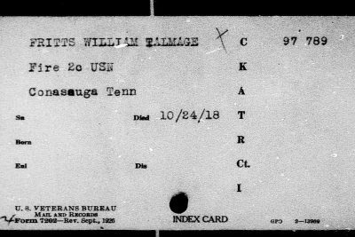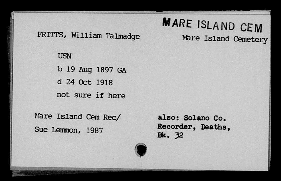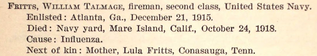 Navy Yard, Mare Island, CA. Died of Influenza 24 October 1918.