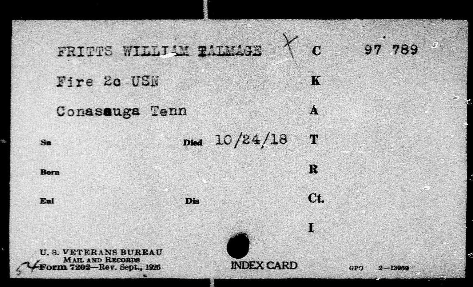 Mother: Mrs. Lula Fritts, Conasauga, TN
