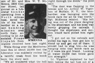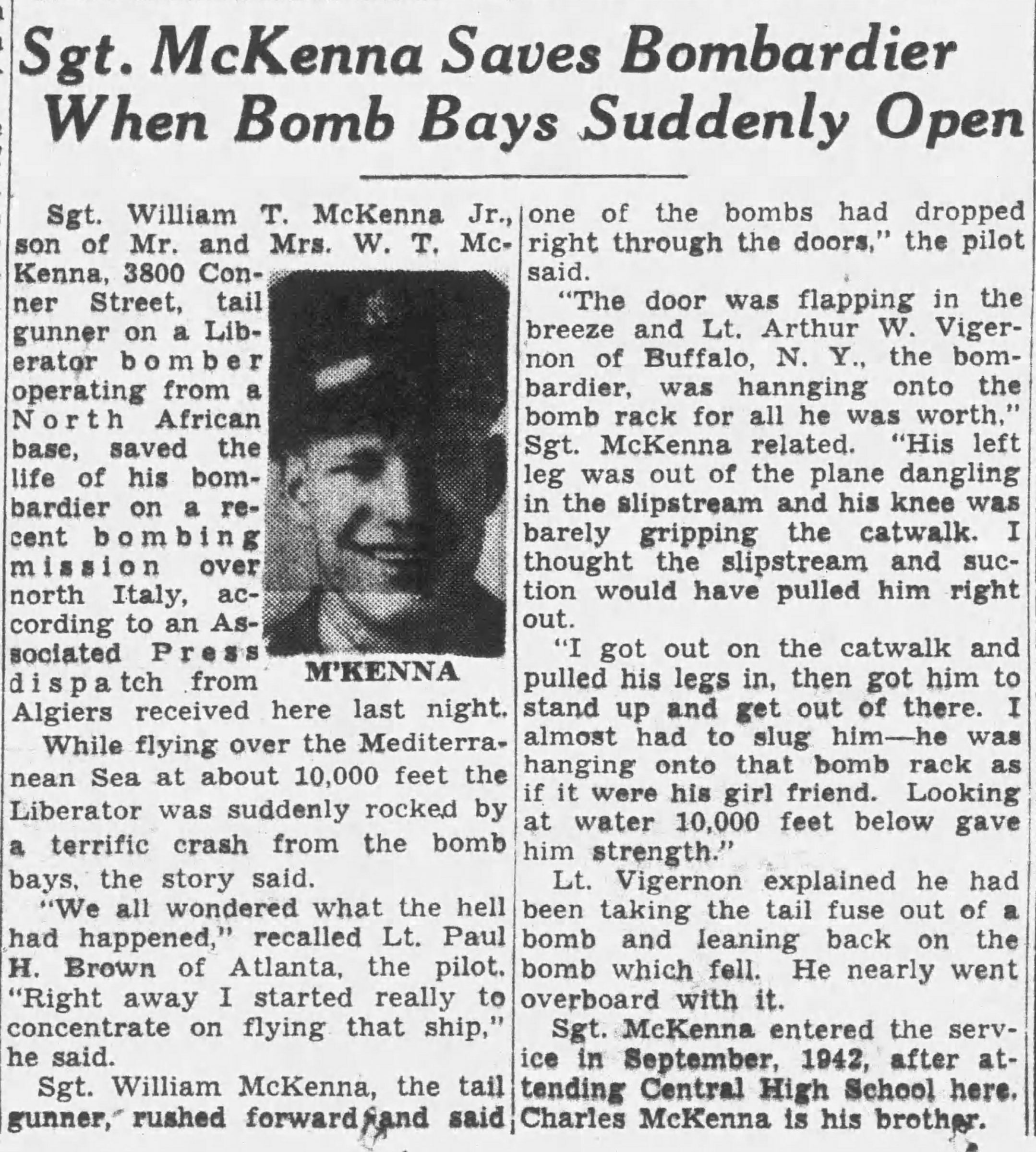 William McKenna didn’t bail out. He was critically if not mortally wounded according to a crewmember. He was last seen by the tail gun position.