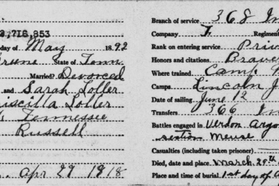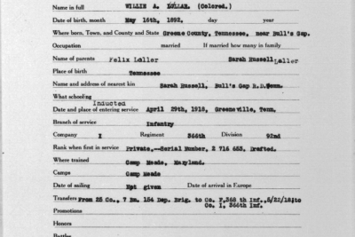 - Division/Assignment: Company I, 366th Infantry Regiment, 92nd Division