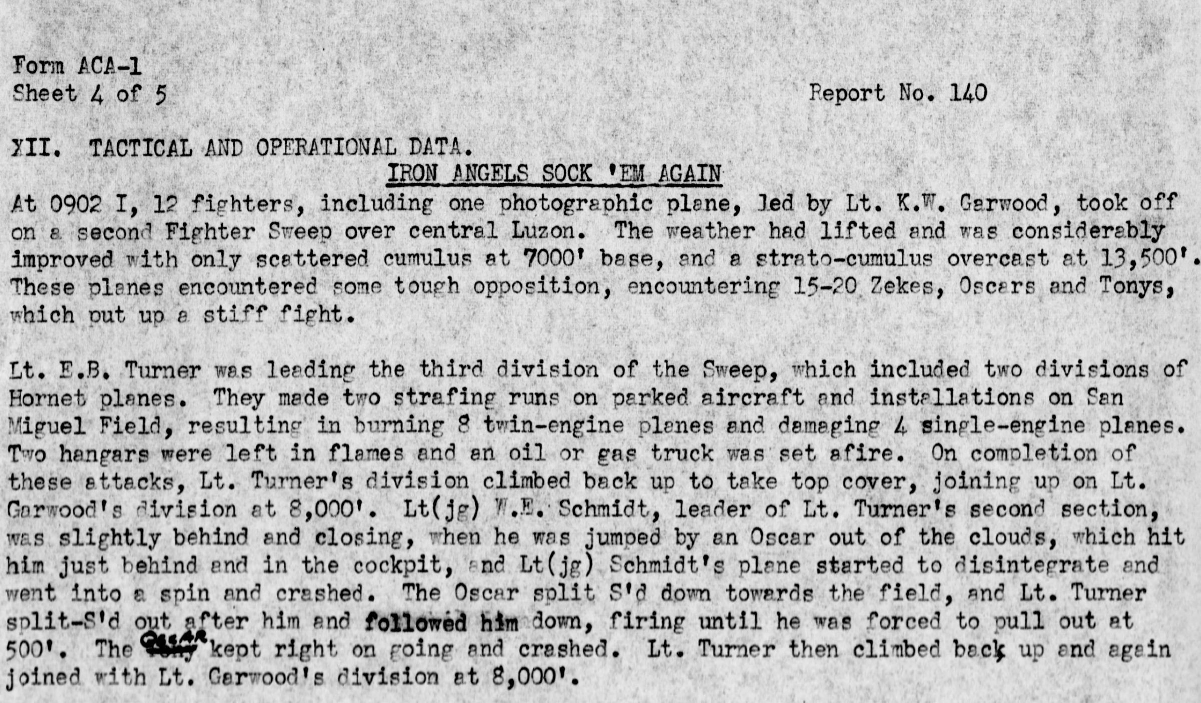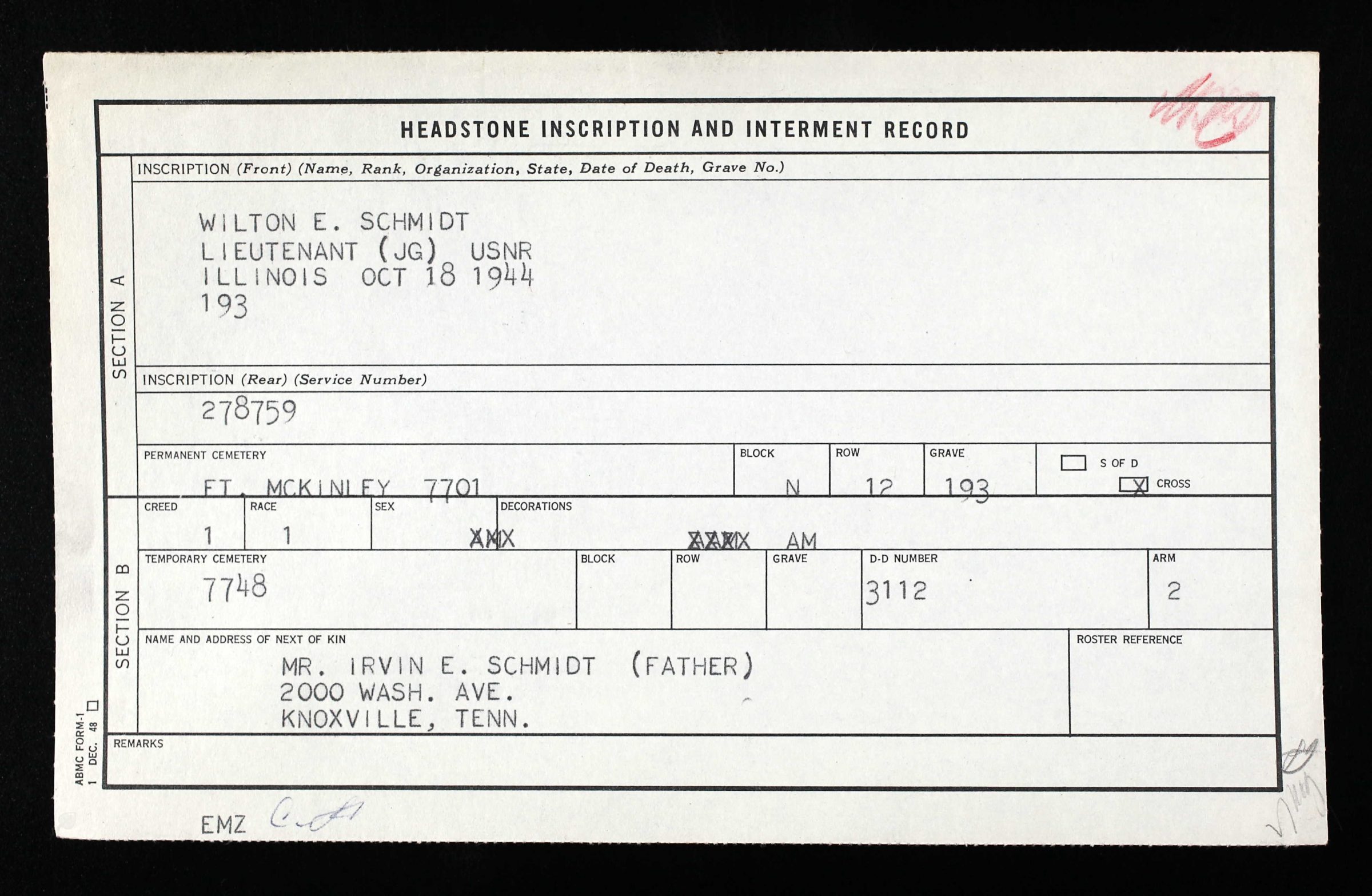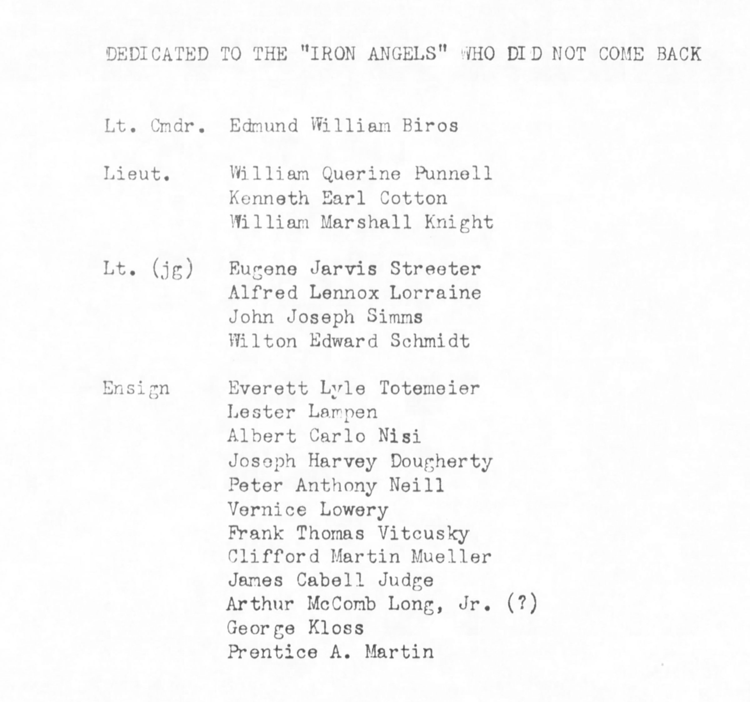 Wilton Schmidt was a pilot with the “Iron Angels, serving with VF-14 on the U.S.S. Wasp. He was Killed in Action during air attacks on Formosa/Taiwan.