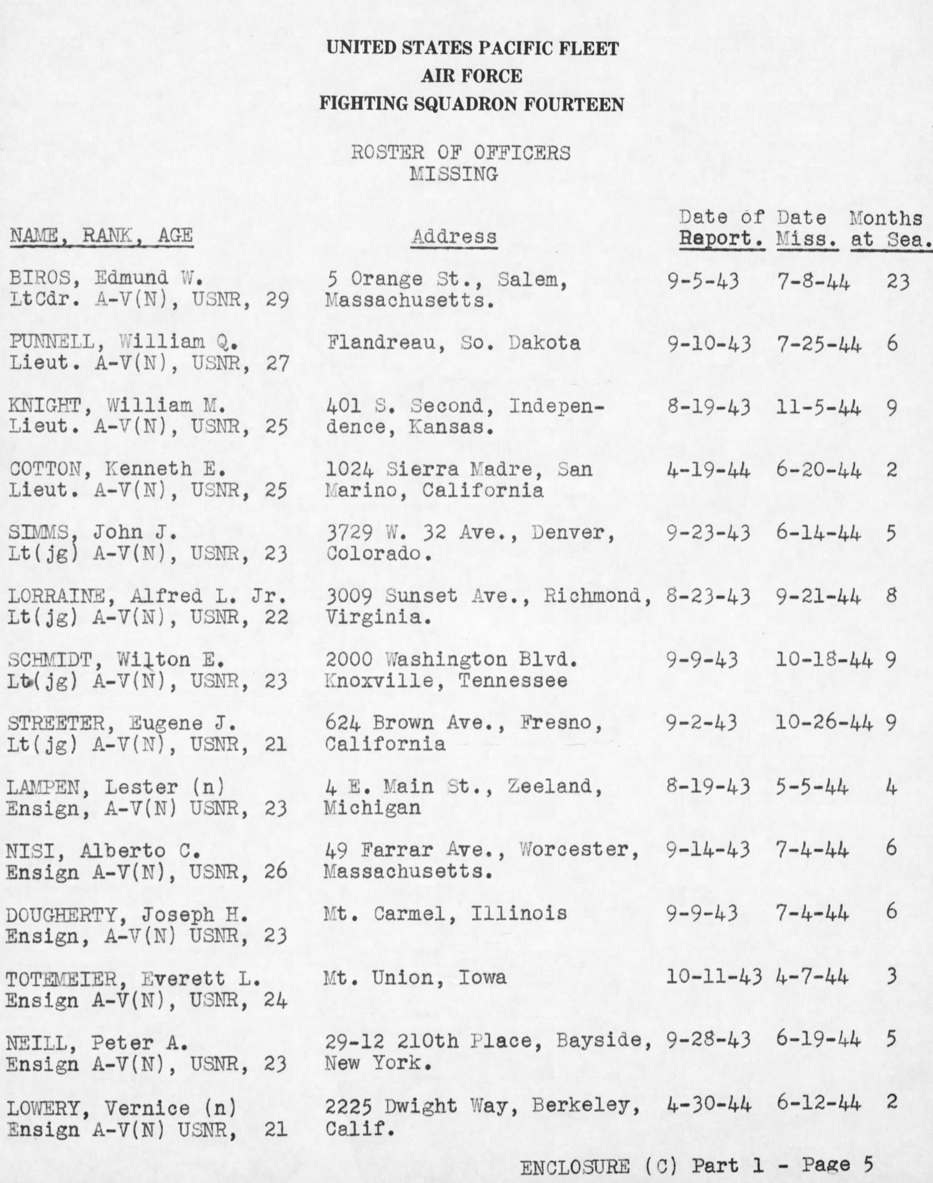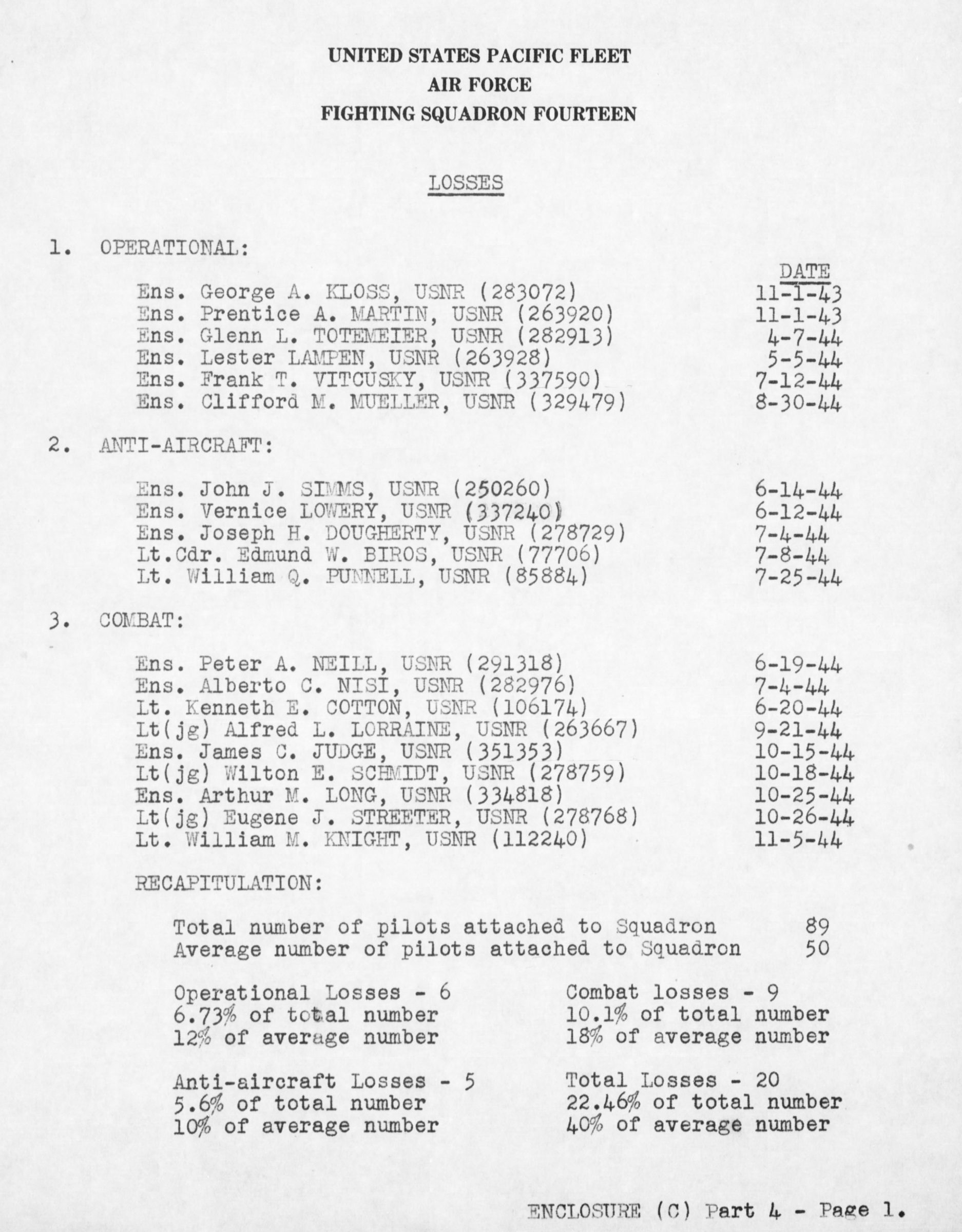- Division/Assignment: VF-14, USS Wasp