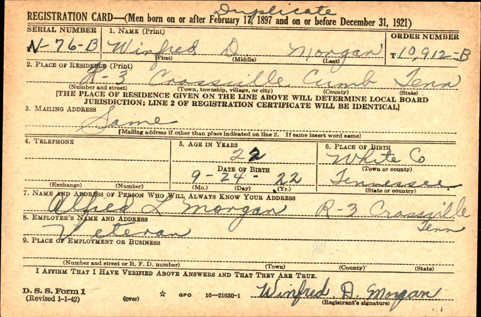 Windred D. Morgan was the son of Alfred Leo Morgan and Ida Alice Simpson.