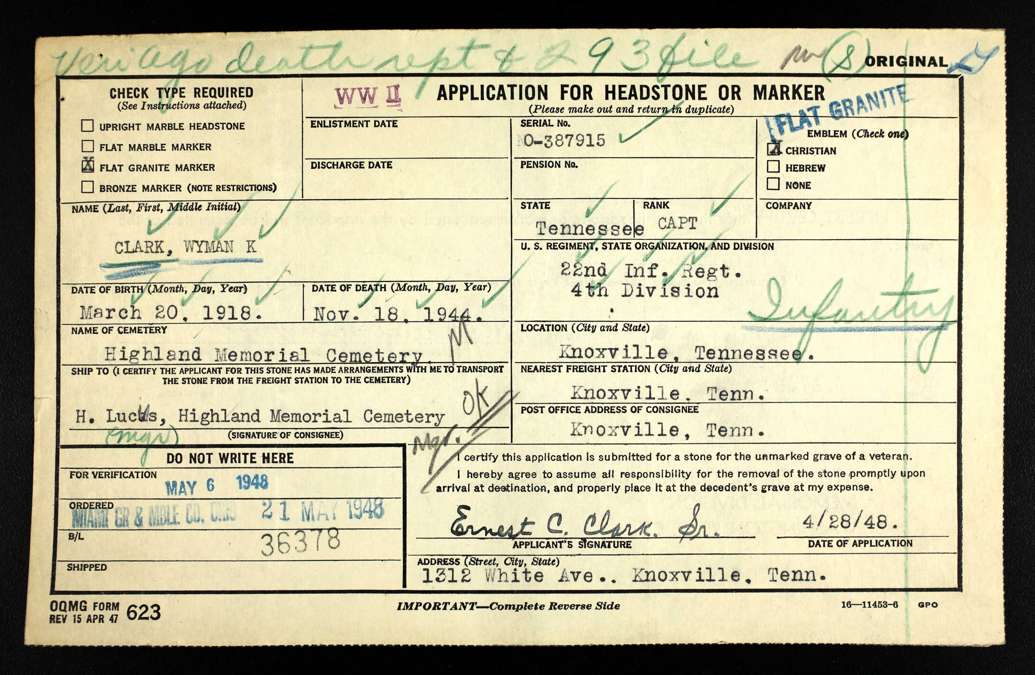 Captain Clark was a 1940 graduate of the University of Tennessee.