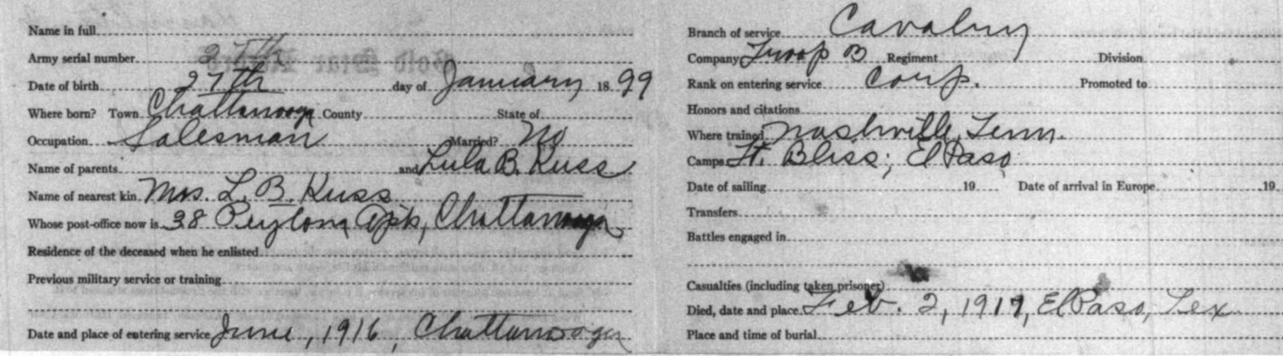 - Burial/Memorial Location: Chattanooga National Cemetery, Chattanooga, Hamilton County, Tennessee