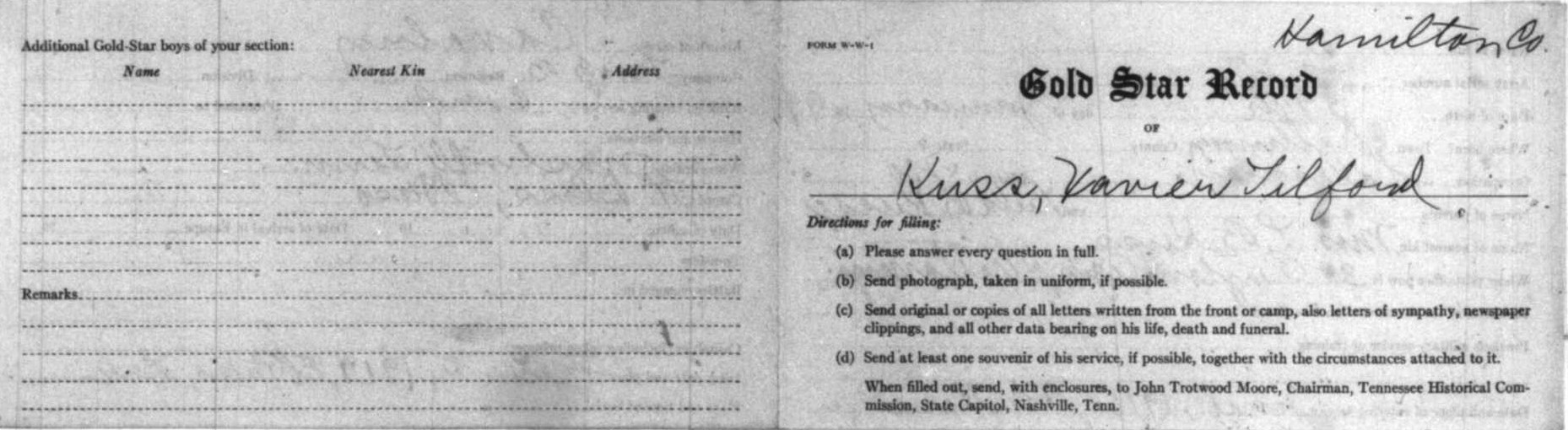 Xavier Tilford Kuss was born in Chattanooga, Tennessee, son of John Albert Kuss and Talulah “Lula” Blanche Tilford.