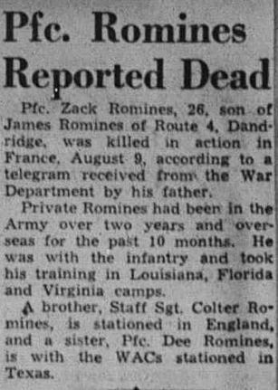 Zack Romines was born 11 December 1917